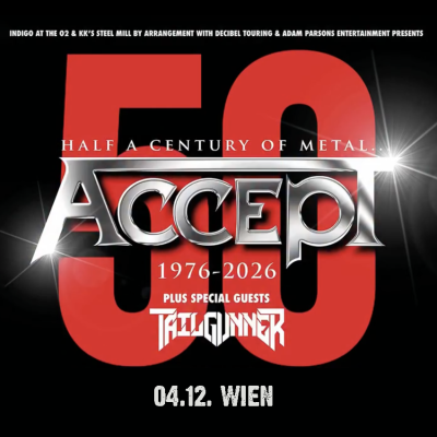 Balls to the Wall!! Accept, ena najpomembnejših nemški metal zasedb, slavijo spoštljivih 50 let. Pod vodstvom Uda Dirkschneiderja se odpravljajo na turnejo, v sklopu katere stopajo v petek, 4. decembra na oder Gasometra. Z njimi kot posebni gostje prihajajo Tailgunner in Dynazty.