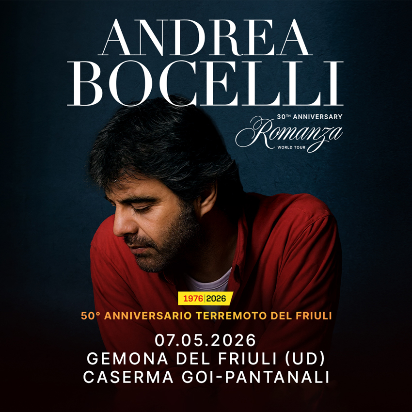 Italijanski tenor, ki najuspešnejše meša klasično operno glasbo in pop, se v 2026 odpravlja na peščico gala koncertov, ki bodo proslava 30 let izida kompilacijskega albuma Romanza, ki ga je dokončno postavil med najbolj znane operne glasove 20. stoletja.
